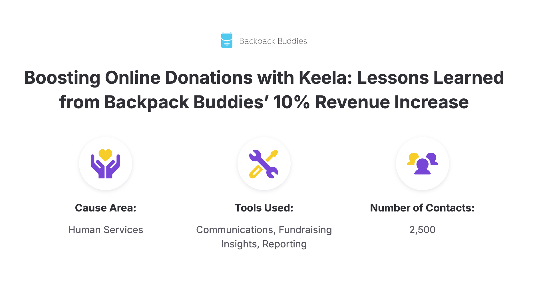 Backpack Buddies increased revenue by 10% using Keela's donor management software.